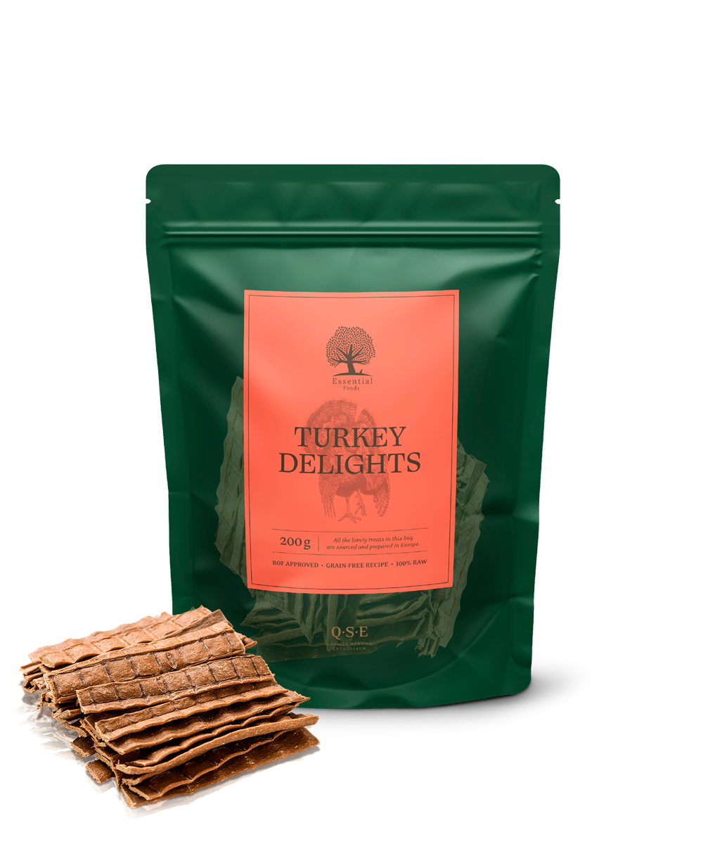 Been looking for a grain free, high meat training treat? 6-8 little pieces in every stick, easy to break off. TURKEY DELIGHT fits easily in your pocket so no more annoying 'greasy treat' pockets!